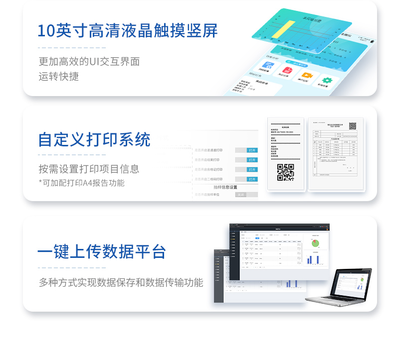 ②儀器具有無線上傳模塊,檢測結(jié)果可批量打印,批量上傳。
