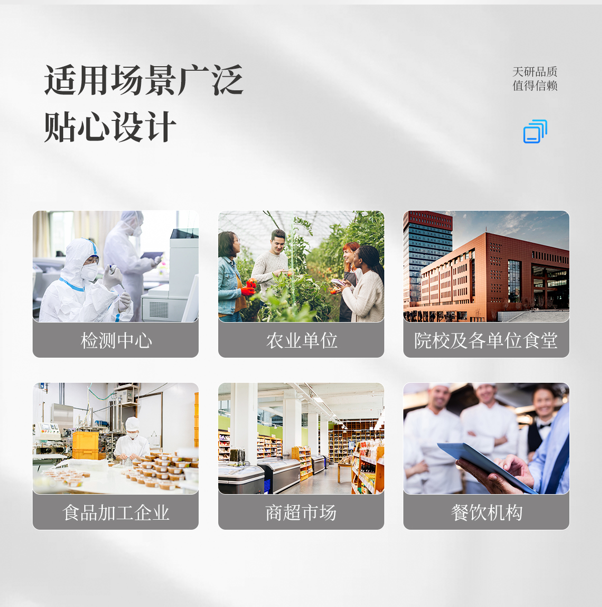 該多功能食品安全檢測儀為集成化食品安全快速檢測分析設(shè)備,廣泛應(yīng)用于市場監(jiān)管局、食品肉產(chǎn)品深加工企業(yè)、學(xué)校食堂、衛(wèi)生部門、畜牧部門、屠宰場、檢驗檢疫部門等單位使用。