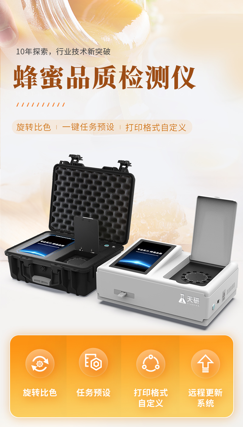 檢測項目:蜂蜜蔗糖、蜂蜜還原糖(葡萄糖和果糖)、蜂蜜羥甲基糠醛、蜂蜜酸度、蜂蜜中農(nóng)藥殘留、蜂蜜淀粉酶值、蜂蜜中脯氨酸、蜂蜜水分、蜂蜜糖分、蜂蜜中重金屬(鉛、鎘、汞)、蜂蜜中抗生素(氯霉素、四環(huán)素、磺胺類、呋喃類、喹諾酮類)、蜂蜜中灰分,應用范圍:應用于現(xiàn)場檢測蜂蜜蔗糖、葡萄糖和果糖、羥甲基糠醛、酸度、農(nóng)殘、淀粉酶、脯氨酸、水分、糖分、重金屬、抗生素、灰分含量的蜂蜜快速檢測儀,可廣泛應用于各類蜂蜜品質的快速定量檢測。