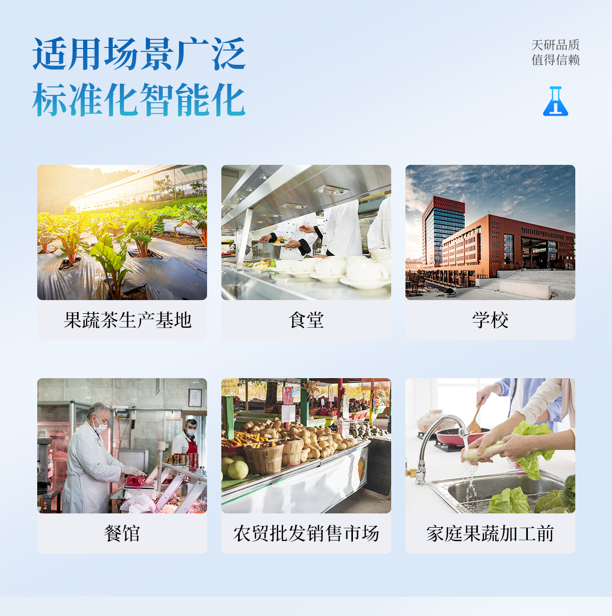 廣泛應(yīng)用于主要用于蔬菜、水果、茶葉、糧食、農(nóng)副產(chǎn)品等食品中有機(jī)磷和氨基甲酸酯類農(nóng)藥殘留的快速檢測(cè);此外還可用于果蔬茶生產(chǎn)基地和農(nóng)貿(mào)批發(fā)銷(xiāo)售市場(chǎng)現(xiàn)場(chǎng)檢測(cè),餐館、學(xué)校、食堂、家庭果蔬加工前的安全速測(cè)等。