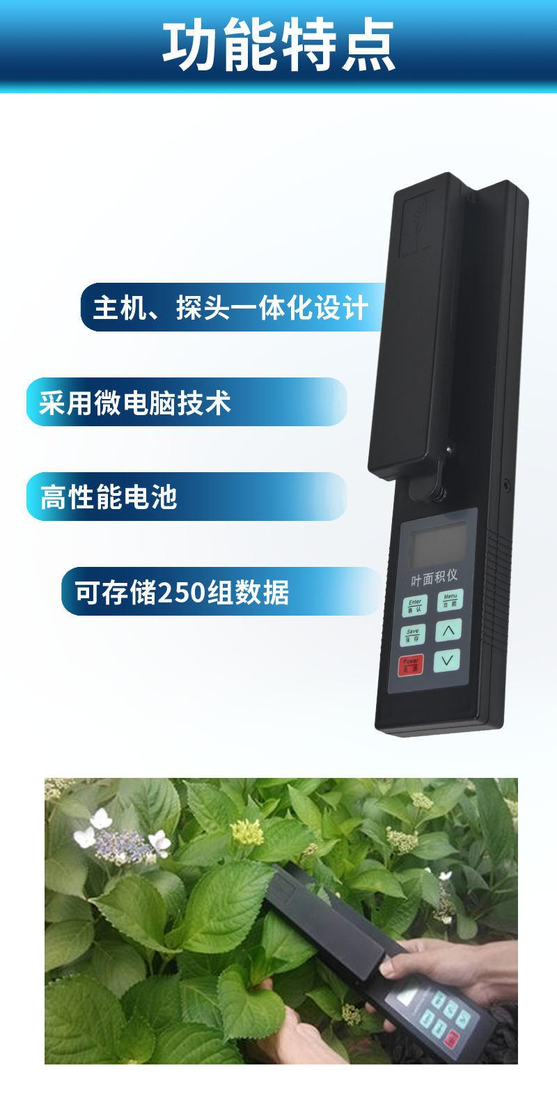 | 1)主機(jī)、探頭一體化設(shè)計(jì),更方便操作。 | 2)采用微電腦技術(shù),LCD大液晶顯示。 | 3)高性能電池,無(wú)需外部供電,低電壓顯示,更適用于野外測(cè)量。 | 4)一次性可測(cè)量較大葉片面積(1000*155mm2) | 5)可存儲(chǔ)250組數(shù)據(jù)(葉面積、葉長(zhǎng)、葉寬)。 | 6)可測(cè)量葉片的多種參數(shù):葉面積、平均葉面積、葉長(zhǎng)、葉寬。 | 7)通訊接口:RSR232接口,可將數(shù)據(jù)導(dǎo)入計(jì)算機(jī)。(此功能只限B和G型) | 8)GPS定位:集成高速GPS定位模塊,上傳數(shù)據(jù)都自帶時(shí)間、經(jīng)緯度信息,方便更有效的 |