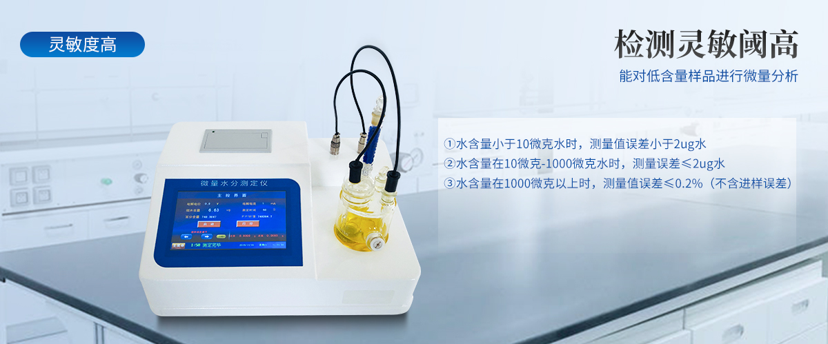 | 微量水分測(cè)定儀根據(jù)卡爾-菲休滴定原理,采用**的微機(jī)電路,測(cè)定性質(zhì)不同的液體、固體中微量水分的含量。對(duì)于不溶于試劑的固體,以及與試劑起化學(xué)反應(yīng)的或容易污染電極的物質(zhì),可配用相應(yīng)的固體、液體進(jìn)樣器,進(jìn)行間接測(cè)定。 | 該儀器具有測(cè)定精度高、分析速度快、使用范圍廣、穩(wěn)定可靠、操作簡(jiǎn)單等優(yōu)點(diǎn)。廣泛用于電力、石油、化工、農(nóng)藥、醫(yī)藥等行業(yè)。樣品測(cè)定過程由儀器自動(dòng)控制,攪拌、測(cè)定60秒左右自動(dòng)完成,直接顯示測(cè)定結(jié)果;全密封滴定池瓶,避免試劑與人接觸,也避免環(huán)境濕度的影響; |