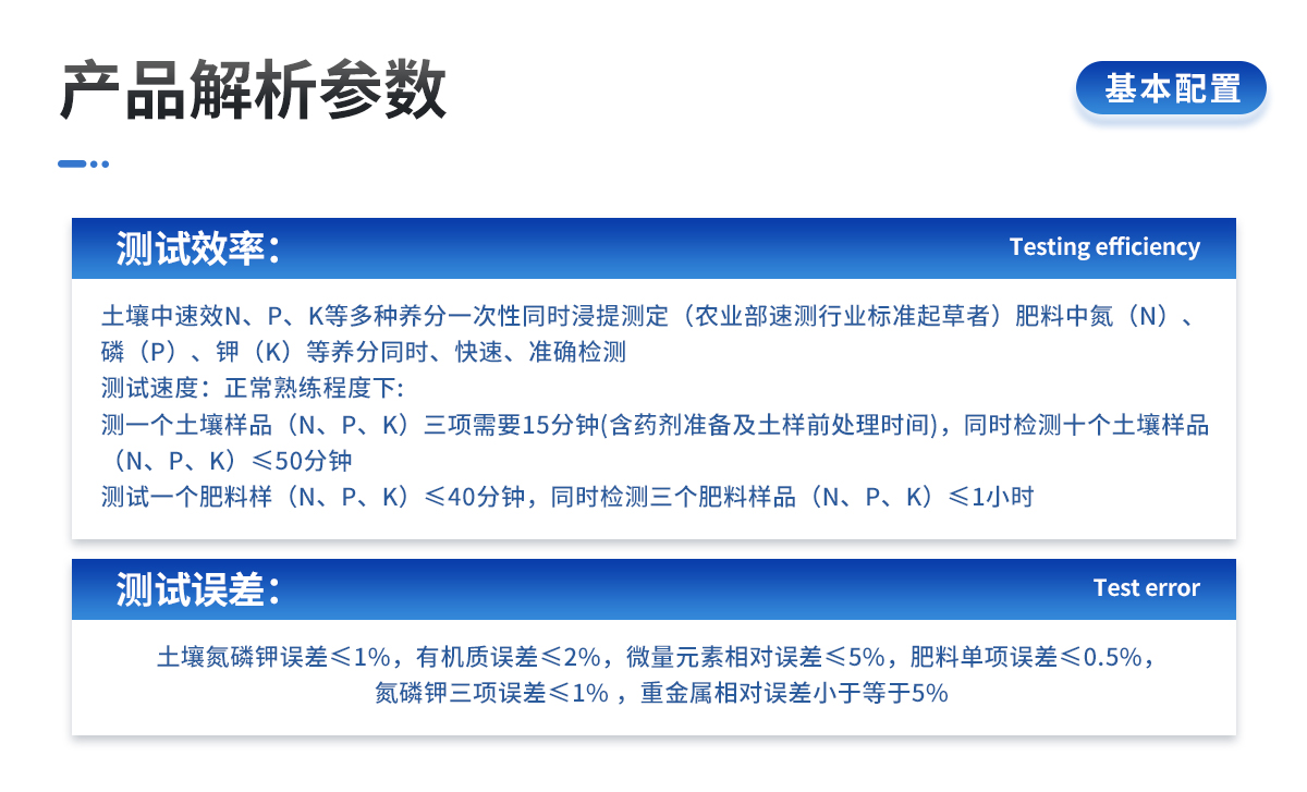 土壤氮磷鉀誤差≤1%,有機(jī)質(zhì)誤差≤2%,微量元素相對(duì)誤差≤5%;肥料單項(xiàng)誤差≤0.5%,氮磷鉀三項(xiàng)誤差≤1%。