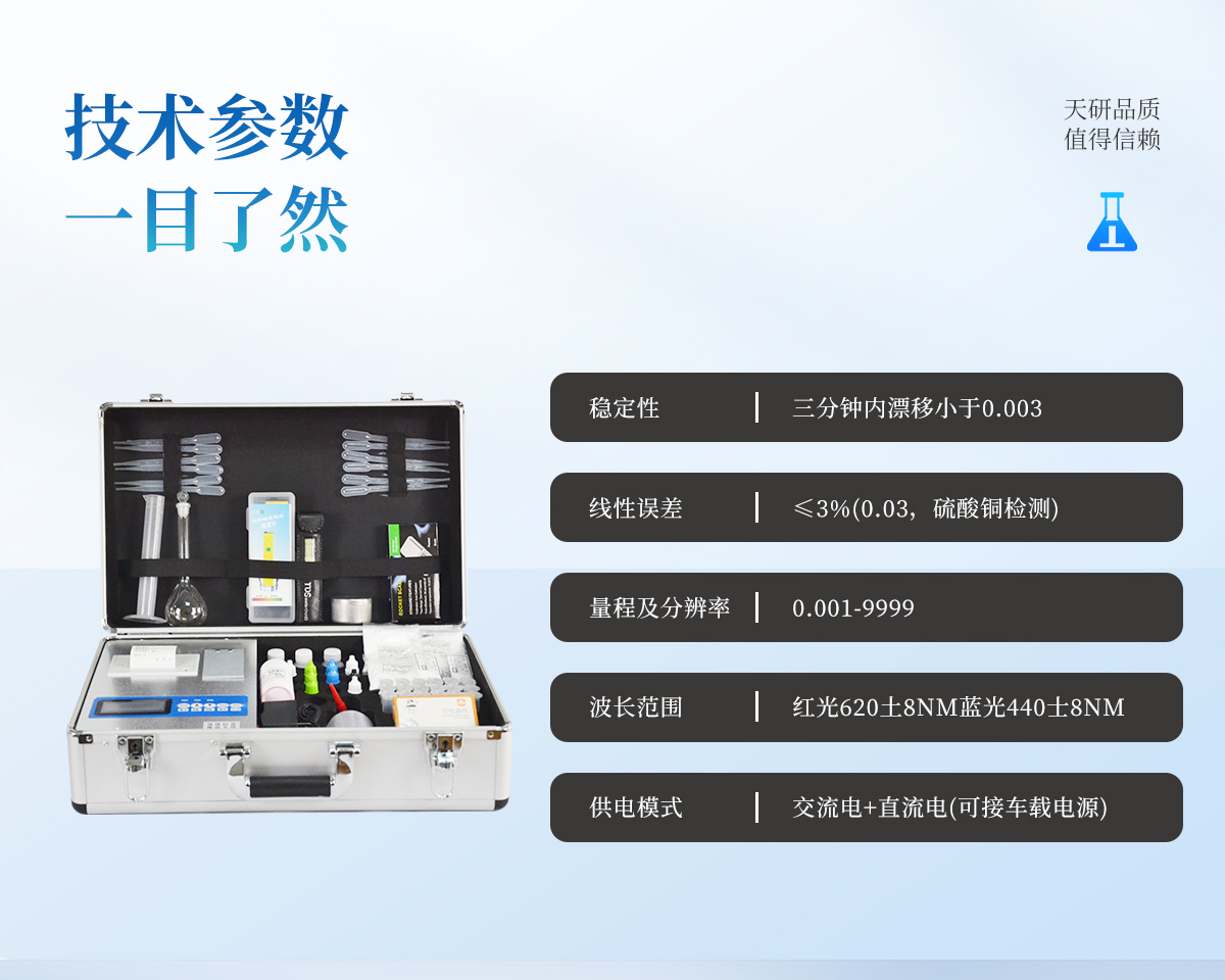 | 功能全:測(cè)試項(xiàng)目國(guó)內(nèi)外全面(各類藥劑均可選購(gòu))。 | 配套齊全,該儀器集藥、器、儀為一體,攜帶方便,相當(dāng)于一個(gè)小型實(shí)驗(yàn)室,用戶只需提供蒸餾水即可在要求時(shí)間內(nèi)完成全部操作。適于農(nóng)業(yè)服務(wù)部門或農(nóng)資經(jīng)銷商鑒別肥料真假、肥料廠商肥料生產(chǎn)中控、農(nóng)資質(zhì)檢部門進(jìn)行農(nóng)資打假,規(guī)范農(nóng)資市場(chǎng)。 | 性能可靠:工作穩(wěn)定性優(yōu)于國(guó)家標(biāo)準(zhǔn)JJG179-90指標(biāo)的10倍以上,重復(fù)性達(dá)到光柵型分光光度計(jì)指標(biāo)水平。 |