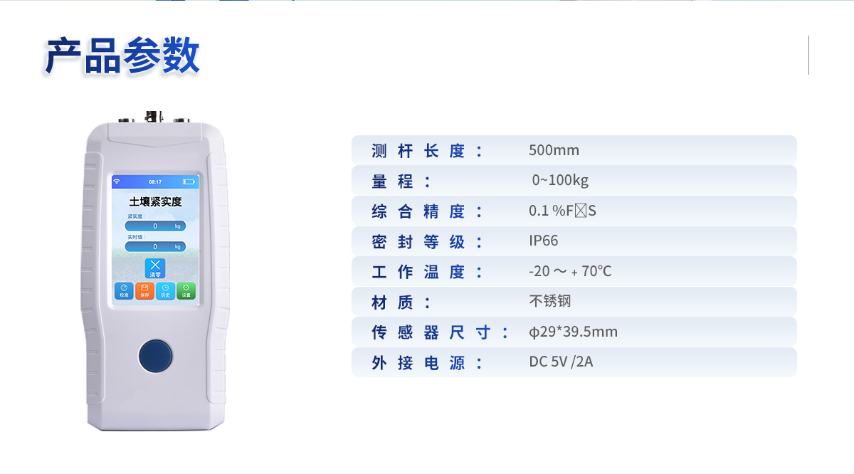 土壤緊實度又叫土壤硬度或土壤堅實度或土壤穿透阻力。一般用金屬柱塞或探針壓入土壤時的阻力表示(單位為Pa)。土壤緊實度是指土壤抵抗外力的壓實和破碎的能力,是土壤性質(zhì)的其中一個方面。另外,土壤物理性包括土壤質(zhì)地、結(jié)構(gòu)、孔隙性等,涉及到土壤的堅實度、塑性、通透性、排水、蓄水能力、根系穿透的難易等。