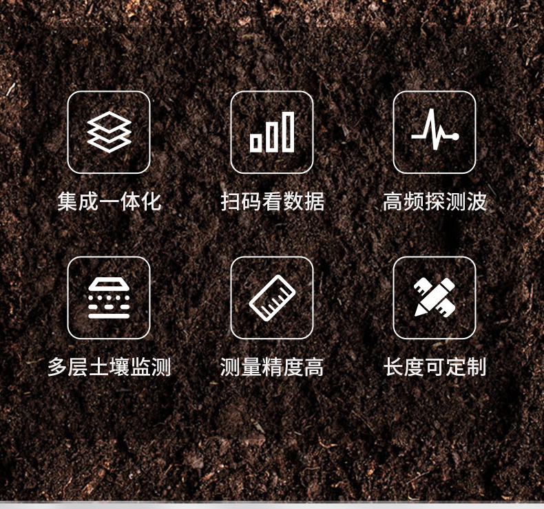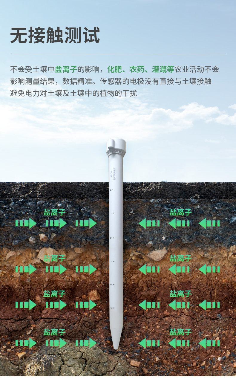 1、外殼采用PVC塑料管,內(nèi)部發(fā)射近1G赫茲的高頻探測(cè)波,可以穿透塑料管,有效感知土壤環(huán)境。2、不受土壤中鹽離子的影響,化肥、農(nóng)藥、灌溉等農(nóng)業(yè)活動(dòng)不會(huì)影響測(cè)量結(jié)果,數(shù)據(jù)精準(zhǔn)。3、傳感器的電極沒有直接與土壤接觸,避免電力對(duì)土壤及土壤中的植物的干擾。4、產(chǎn)品采用標(biāo)準(zhǔn)的Modbus-RTU485通信模式,*遠(yuǎn)通信2000米。5、支持10-30V寬電壓充電。6、一體式可同時(shí)監(jiān)測(cè)四層土壤溫濕度。