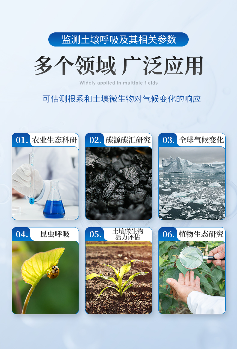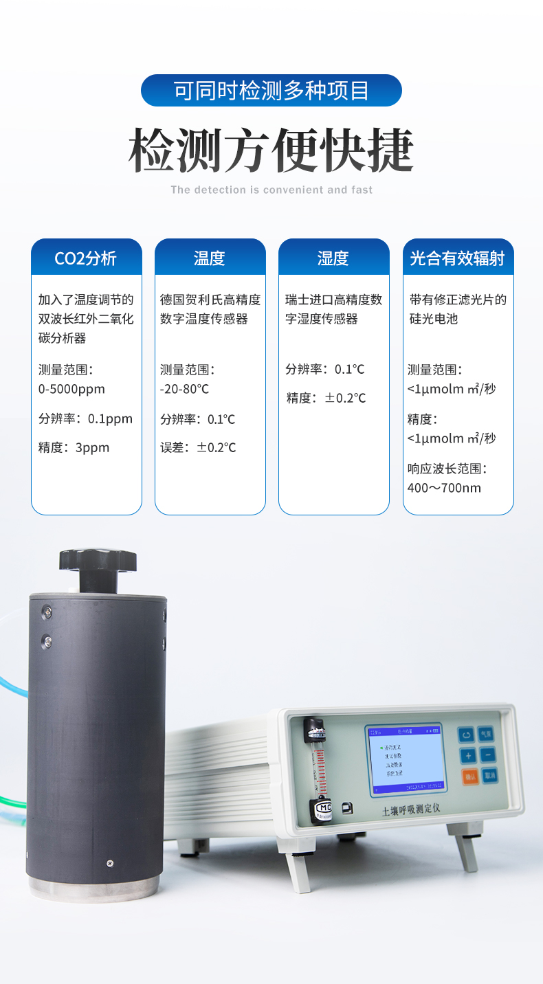 土壤呼吸是土壤生態(tài)系統(tǒng)碳素循環(huán)的一個重要過程,是土壤碳素同化異化平衡作用的結(jié)果,也是碳素由陸地生態(tài)系統(tǒng)返回大氣的主要途徑,是土壤中生命活動的表征,準確測定其釋放量是評價生態(tài)系統(tǒng)中生物學過程的關鍵;通過對土壤呼吸及其相關參數(shù)的監(jiān)測,可估測根系和土壤微生物對氣候變化的響應。土壤CO2通量在時間和空間上受多種復雜物理和生物過程影響,長期、連續(xù)、準確的測量土壤碳通量,對陸地生態(tài)系統(tǒng)碳通量研究具有重要的意義。土壤呼吸測定儀可以同時顯示呼吸室內(nèi)部的CO2濃度、溫度和濕度變化以及外部光合有效輻射強度。廣泛應用于農(nóng)業(yè)生態(tài)科研、碳源碳匯研究、全球氣候變化、土地利用方式改變、生態(tài)修復研究、土壤微生物活力評估、植物生態(tài)研究、昆蟲呼吸、根系呼吸以及水果貯藏。 產(chǎn)品適用于農(nóng)業(yè)農(nóng)村局、高校、科研院所、水利局、環(huán)保局、企事業(yè)單位。