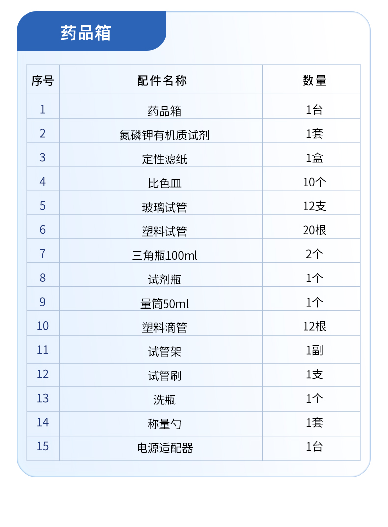 八、全項(xiàng)目土壤肥料養(yǎng)分檢測(cè)儀配置清單: