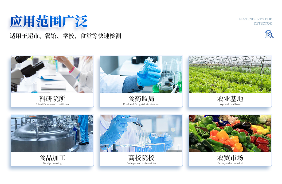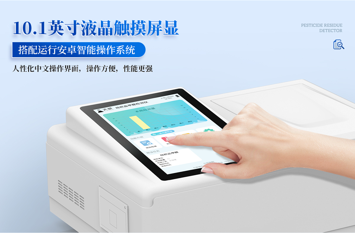 天研儀器有限公司生產(chǎn)的高精度農(nóng)藥殘留檢測儀廣泛應(yīng)用于主要用于蔬菜、水果、茶葉、糧食、農(nóng)副產(chǎn)品等食品中農(nóng)藥殘留的快速檢測,依據(jù)國標GB/T5009.199-2003進行檢測,適用于果蔬茶生產(chǎn)基地以及農(nóng)貿(mào)批發(fā)銷售市場現(xiàn)場檢測,餐館、學(xué)校、食堂、家庭果蔬加工前的安全速測等。目前廣泛應(yīng)用于市場監(jiān)管局、檢測中心、衛(wèi)生監(jiān)督部門、農(nóng)業(yè)部門、院校及各單位食堂、、商超市場、司法部門、餐飲機構(gòu)、檢驗檢疫部門等單位使用。