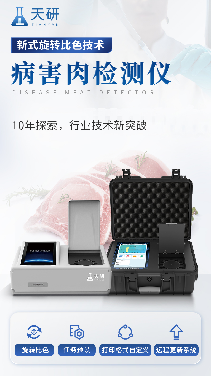 可快速檢測病害肉、組胺、揮發(fā)性鹽基氮,儀器預(yù)留其他項目檢測程序和端口,根據(jù)日后需求可方便的自主增加檢測項目。