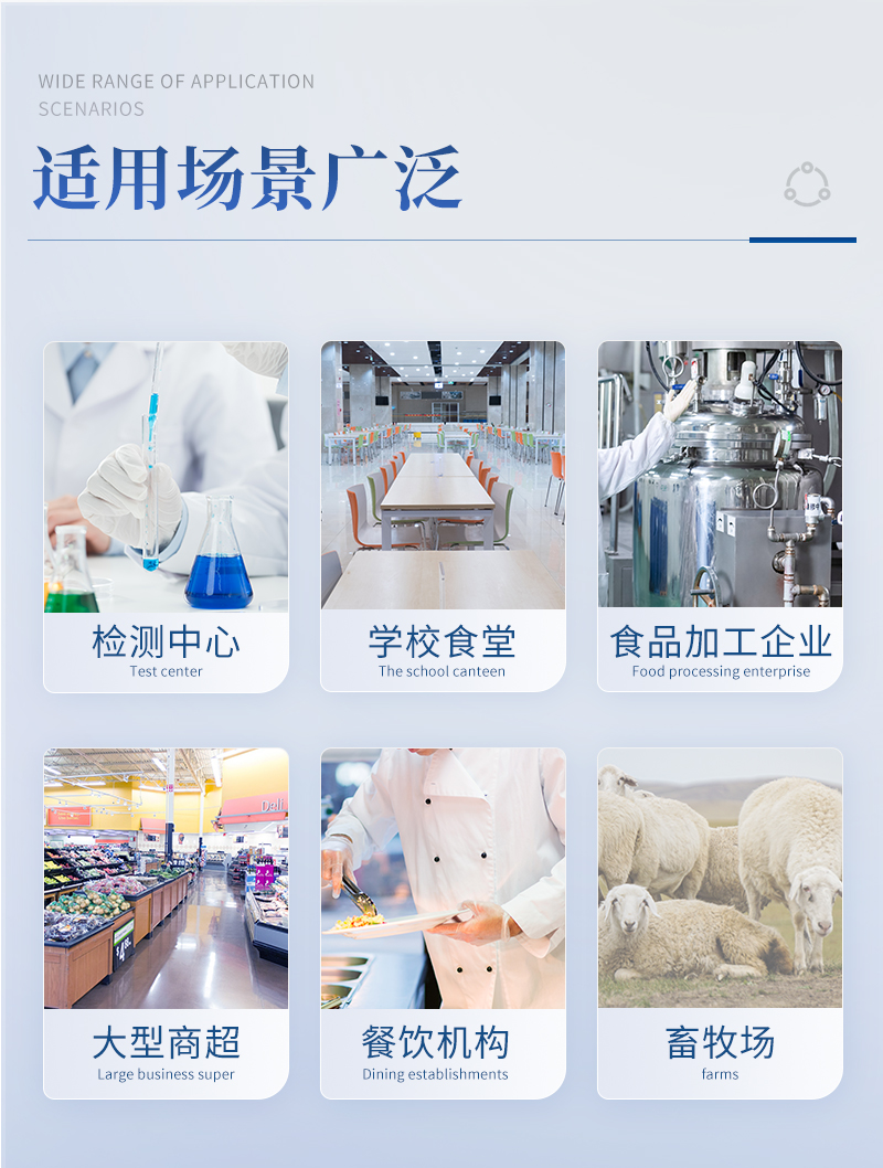 該多功能食品安全檢測儀為集成化食品安全快速檢測分析設(shè)備,廣泛應(yīng)用于市場監(jiān)管局、食品肉產(chǎn)品深加工企業(yè)、學(xué)校食堂、衛(wèi)生部門、畜牧部門、屠宰場、檢驗檢疫部門等單位使用。